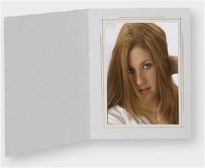 Whitehouse Photo Folders are white linen with a unique gold border around photo.